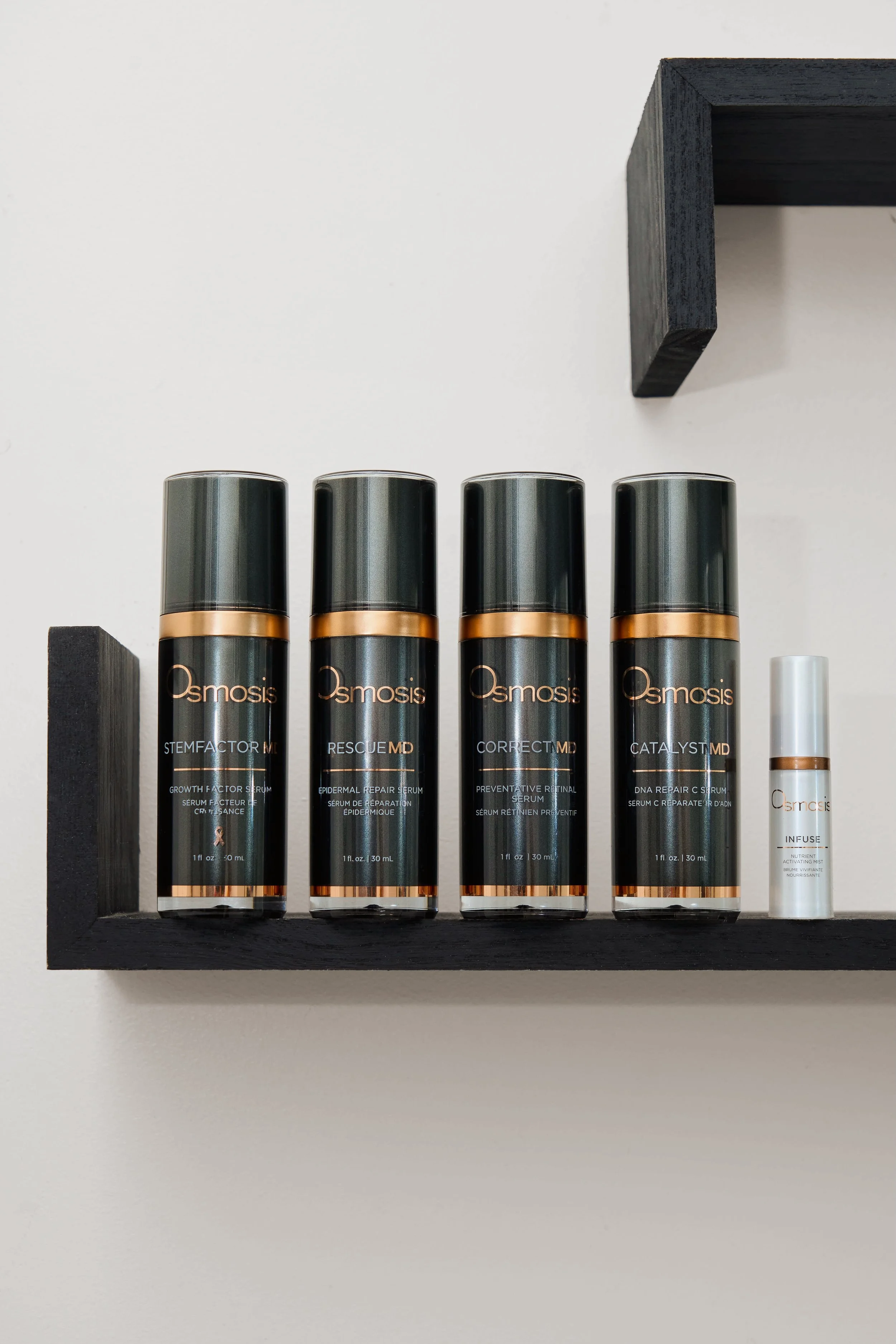 Apply 1-2 pumps StemFactorMD to clean, misted skin to target aging, texture, and uneven tone. Massage in.Moisturize